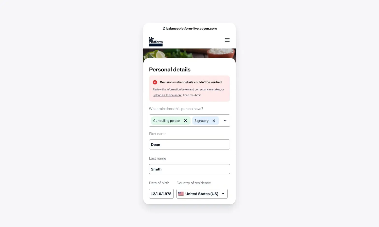 Where possible, I leveraged the existing Hosted Onboarding model (including how roles and entity data were surfaced) to reduce context switching for users, and designed flows that made it easier for merchants to confirm or correct data when a review was required.