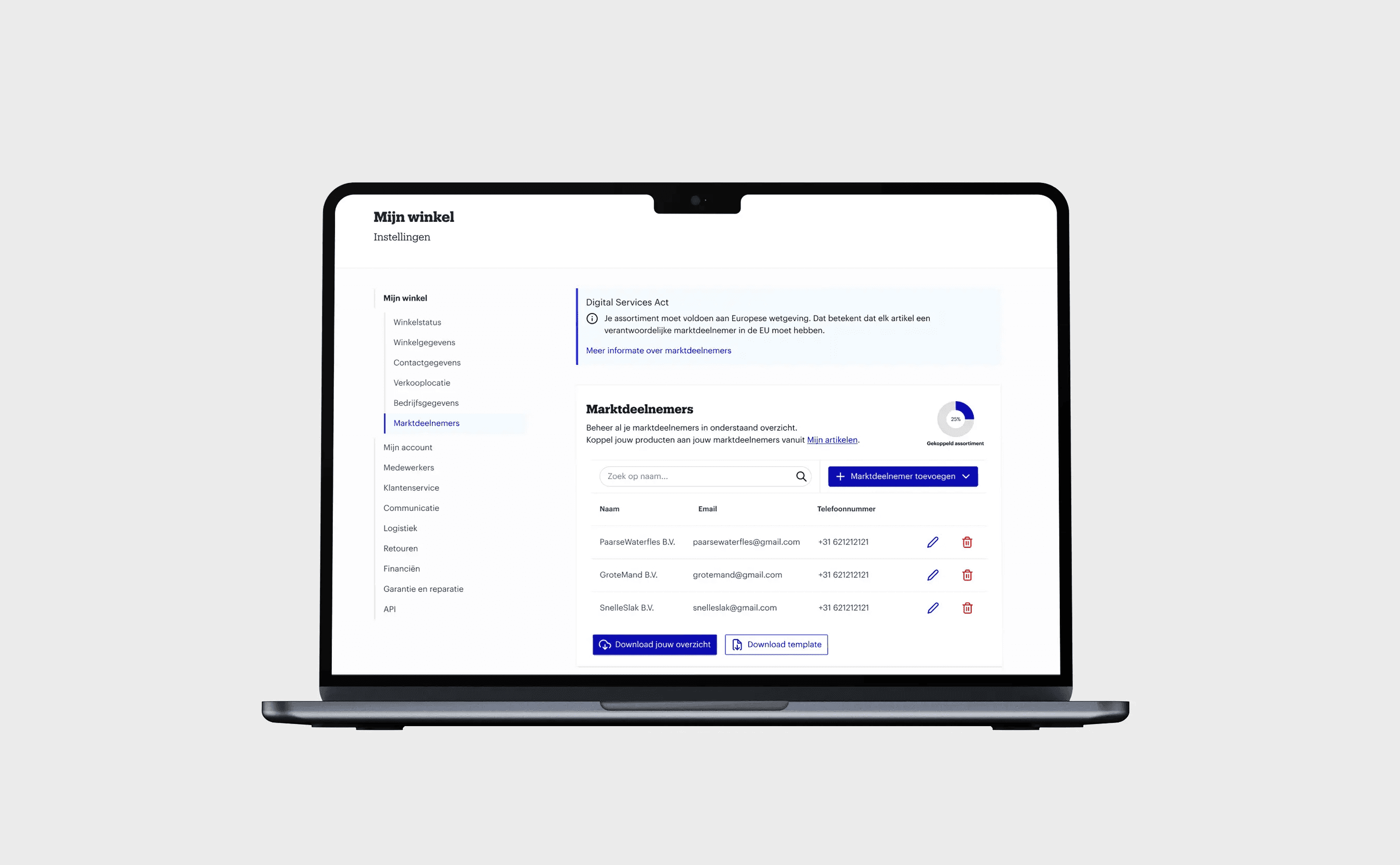 The Digital Services Act introduced new European regulations requiring online marketplaces to clearly identify the responsible Economic Operator for every product offered on the platform. For bol, this meant that all partners must provide and maintain Economic Operator information for each offer, with a hard enforcement deadline of February 1, 2025.