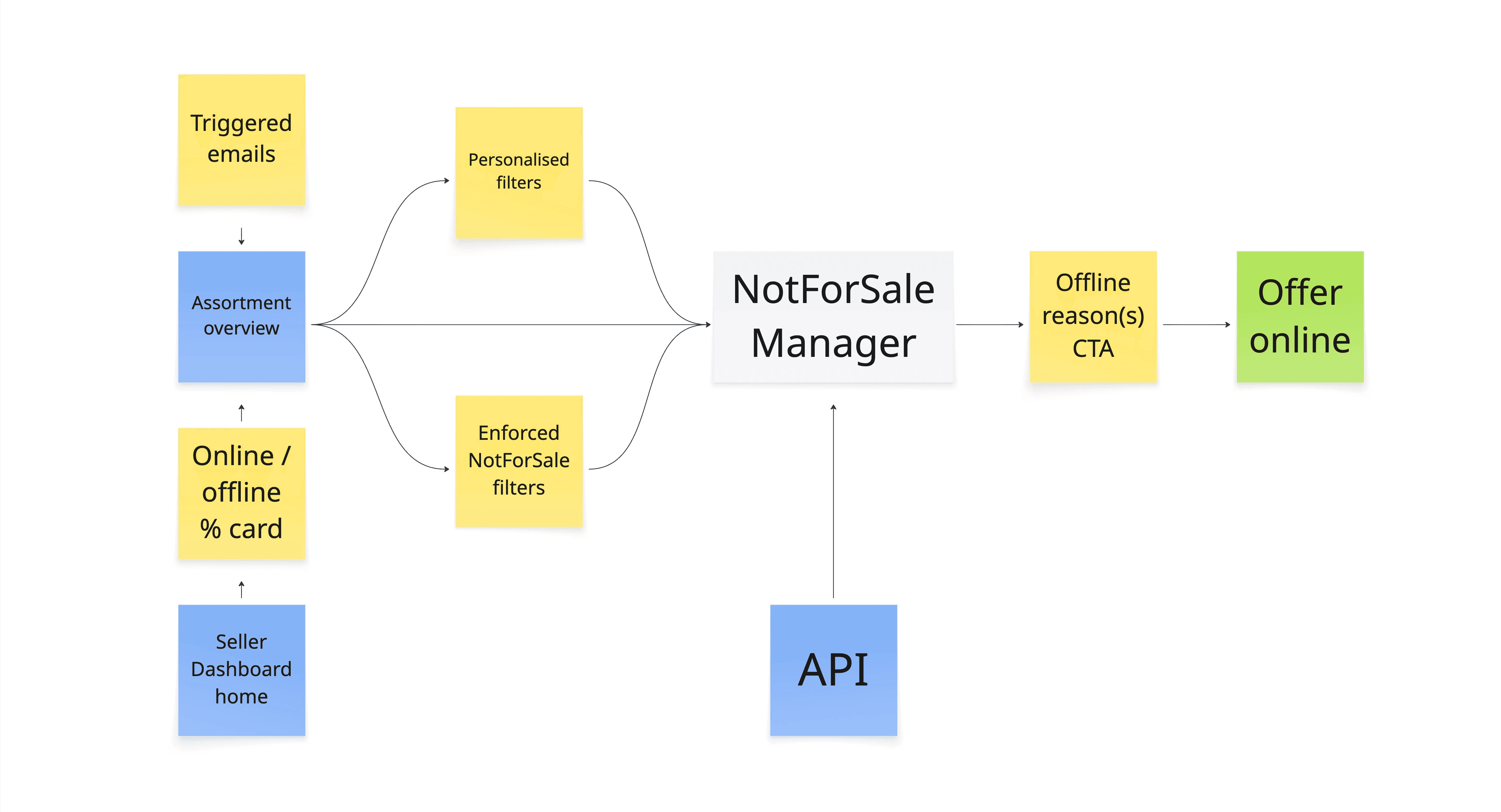 The core decision was to create a single, centralized source of truth for all offline reasons across bol. This system became the Not For Sale Manager.