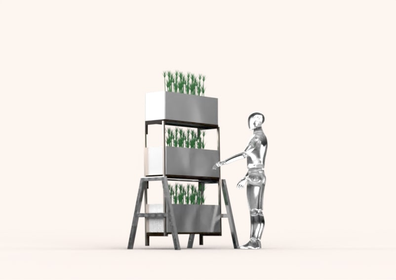 Our innovative concept enables users to vertically stack growing trays of their choice, facilitating the cultivation of multiple crops within a compact footprint. The rotating crop tables come in various sizes, catering to diverse user needs and adapting to different environmental conditions. Additionally, we propose establishing an initiative that collaborates with the local government to align with their ongoing efforts to make farming more accessible to citizens.