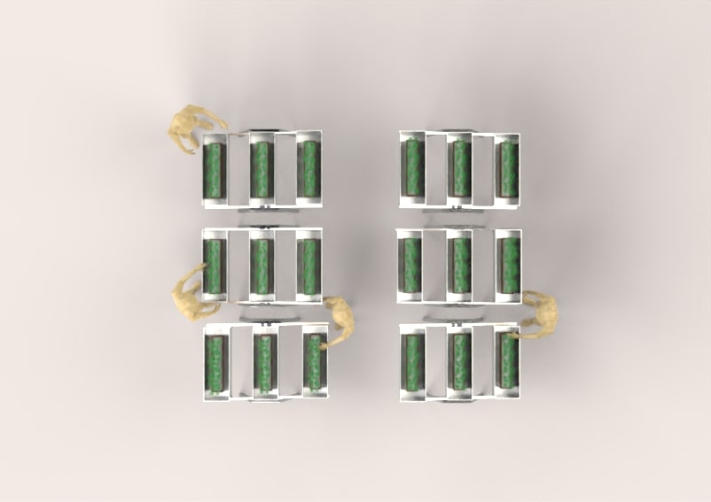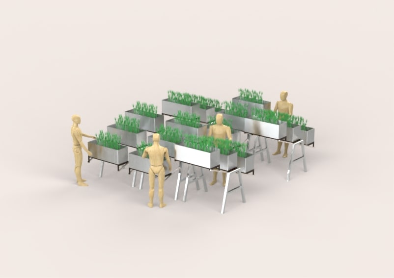 Our innovative concept enables users to vertically stack growing trays of their choice, facilitating the cultivation of multiple crops within a compact footprint. The rotating crop tables come in various sizes, catering to diverse user needs and adapting to different environmental conditions. Additionally, we propose establishing an initiative that collaborates with the local government to align with their ongoing efforts to make farming more accessible to citizens.